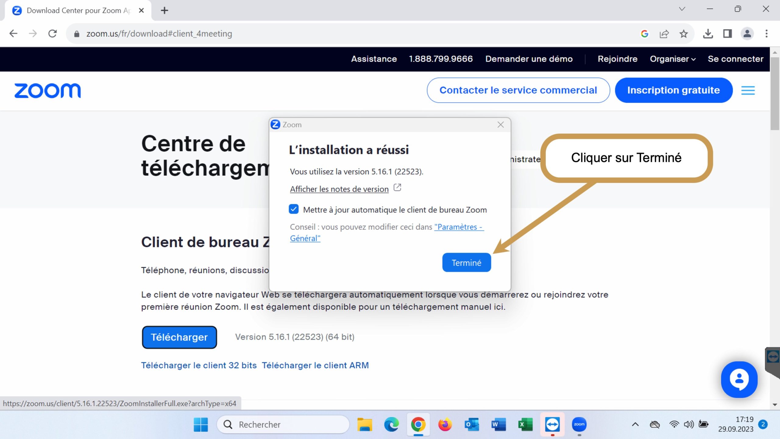Cliquer sur ce lien pour télécharger le logiciel : Zoom